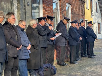 Nach dem Gottesdienst in der St. Wilhadi Kirche mit Pastor Büttner versammelten sich Bürgerinnen und Bürger, die Feuerwehrkameraden und die Fahnenträger der Vereine, um der Opfer von kriegerischen Auseinandersetzungen, Terror und Gewalt zu gedenken. Krieg ist so aktuell und so nah wie lange nicht mehr. Viele Menschen sind tagtäglich in Lebensgefahr und viele auf der Flucht. Von Menschen ausgehende Gewalt fordert gerade in der jetzigen Zeit viele Todesopfer.
