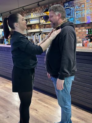 Wie immer gibt es einen Kohlkönig: Nicht nur Geburtstag sondern auch noch gekrönt und von der Wirtin geschmückt: der Ortsbrandmeister Markus Heimbüchel.