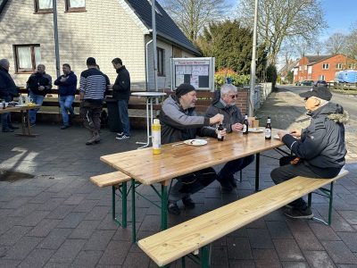 Nach der Sammelaktion stärkte sich das Team im Hause von Reinhard Rehwinkel mit Würsten und selbstgemachten Kartoffelsalat.