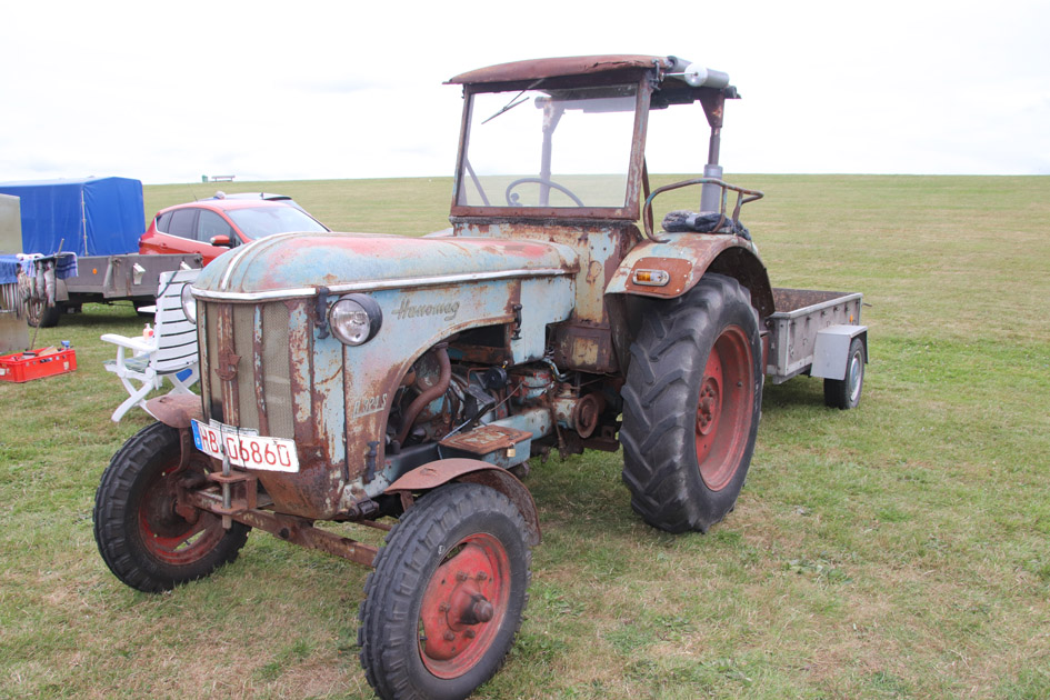 Mit dem alten Trecker kamen Räucherer an den Deich